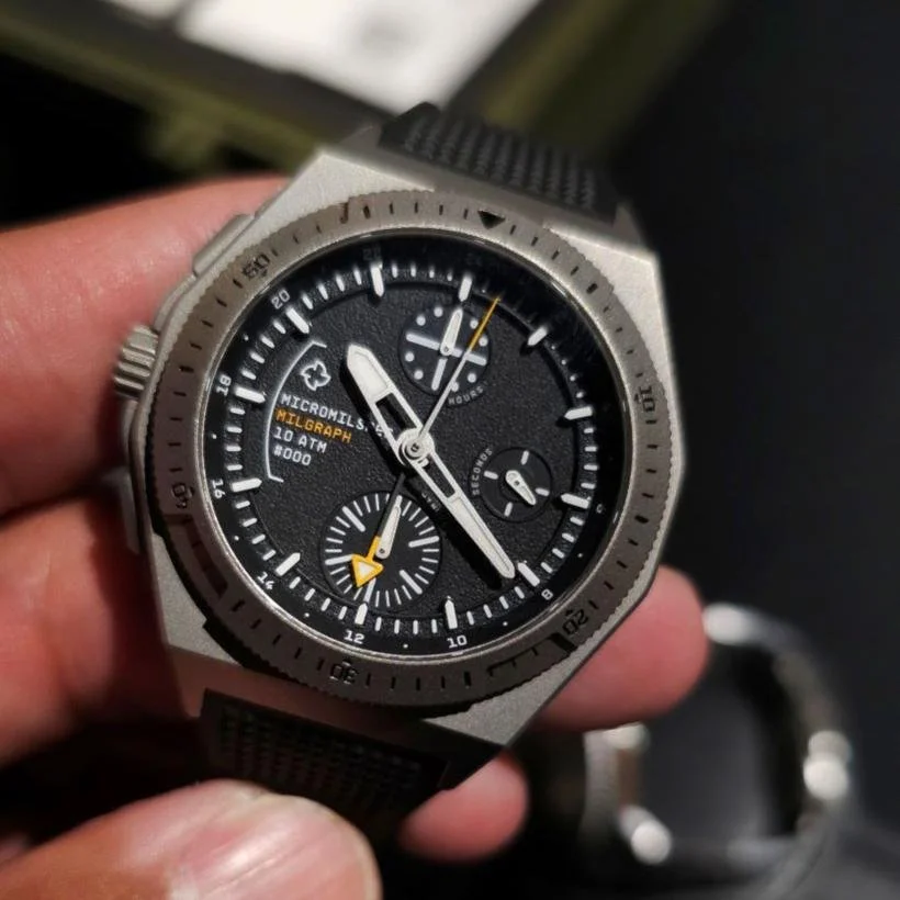 Tough, military-inspired tool watches are what Micromilspec does best. I was really intrigued by the Milgraph—titanium case, Destro orientation, and a super-grippy bezel. Theo from the brand gave me a thorough walkthrough, and these timepieces mean business. I’d love to see them offer a bracelet version, though! These watches are built to handle anything. Learn more here.